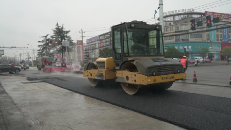 城市另一头,迎宾大道升腾着热气,沥青运料车和压路机正热火朝天地打着配合,进行着沥青摊铺工作。经过数月的布管、回填,这条道路的雨污分流施工已接近尾声。