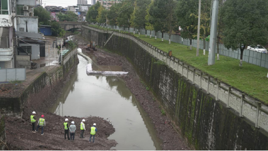 ▲正在清淤的重庆市江津区水环境综合治理工程(一期)PPP项目中的李市小溪综合治理工程。摄影:黄正平