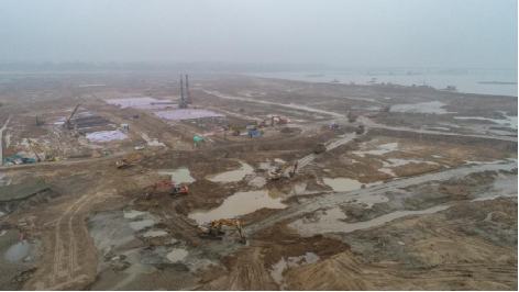 淠河六安市城南水利枢纽工程项目施工现场 摄影:崔徐波