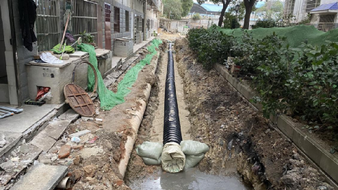 在位于东风湖流域的天润化工小区,工人们正在铺设雨水管道和污水管道,控制污染源头。雨污分流后,污水流入即将移交给三峡集团运营的马壕污水处理厂,届时的污水进厂BOD浓度,将比管网完善前提升约30%,污水收集率明显提高。
