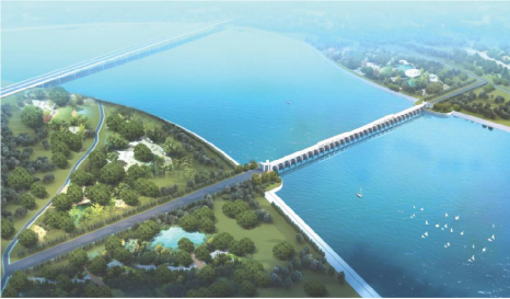 37座闸墩立于水面之上,每个闸墩长35米、高10.5米,远远望去,一座“拦水坝”已然成型。